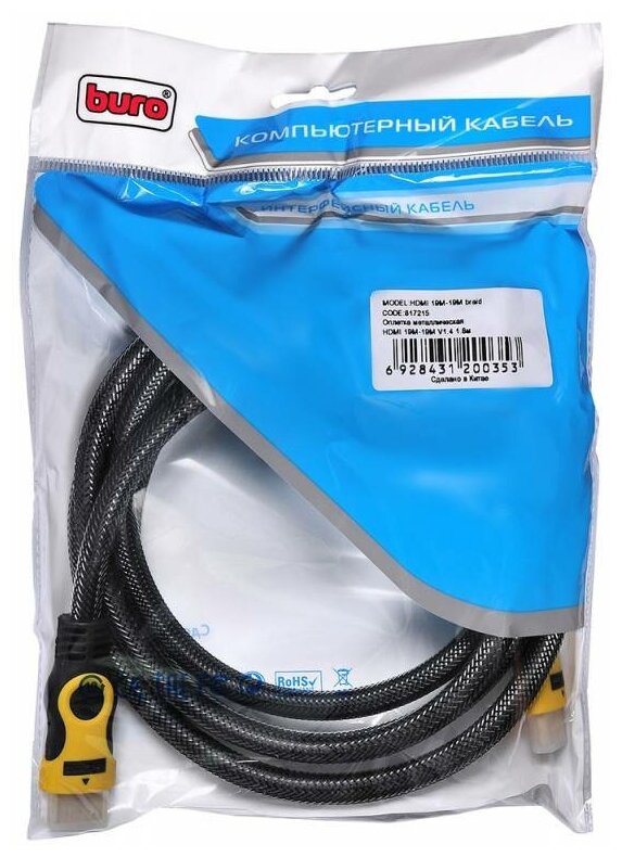 Кабель Buro 817219 HDMI m -> HDMI m , 1.8 метра, черный