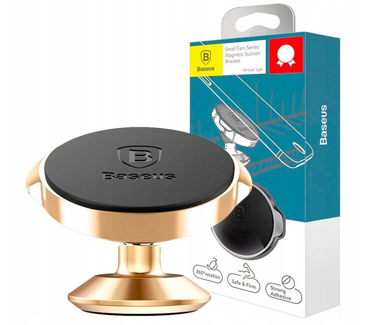Автомобильный держатель BASEUS Small ears, магнитный, золотой, на клею, компактный с регулеровкой