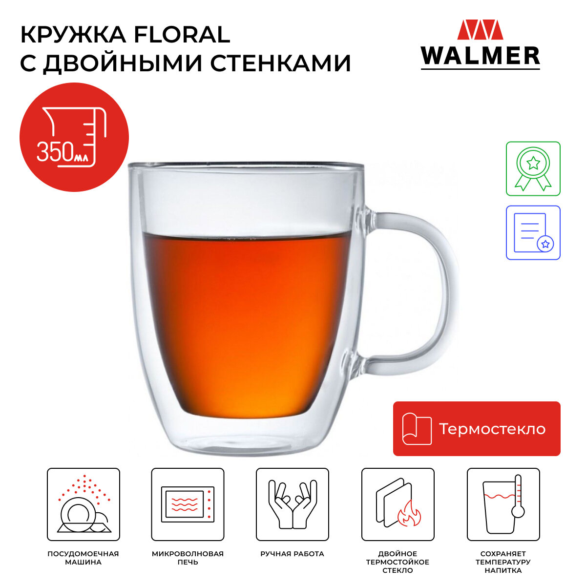 Кружка WALMER Princess, 350 мл, двойная стенка, термостекло