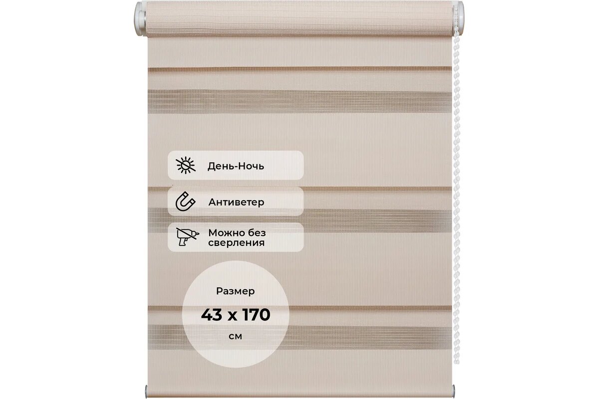Рулонная штора DDA День-ночь бежевая, 43х170 .