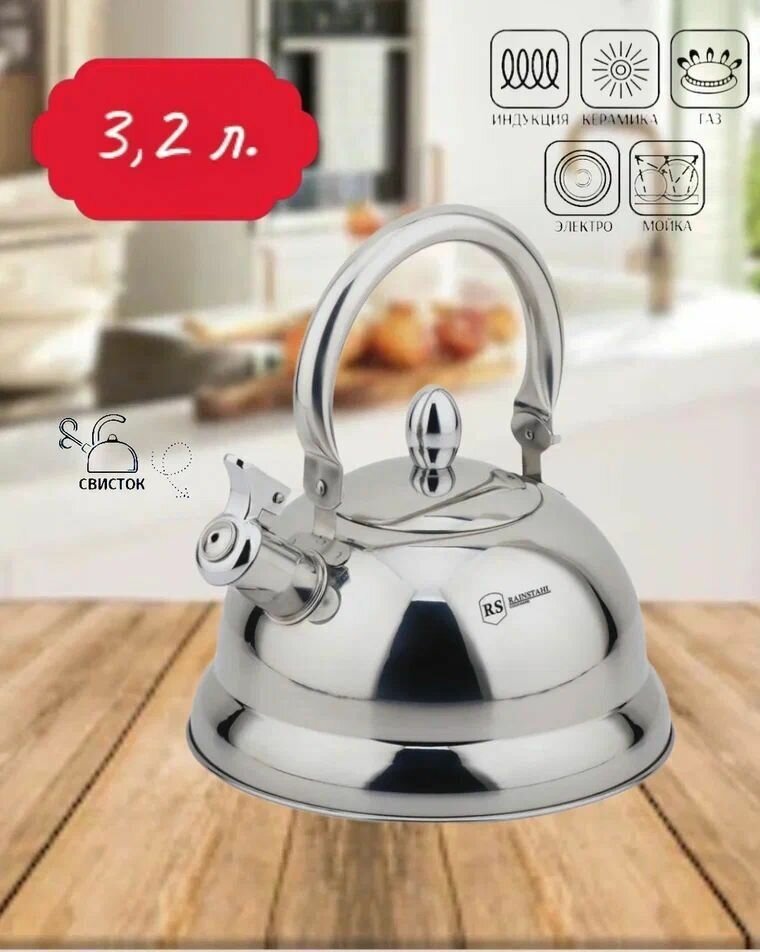 Чайник со свистком " RAINSTAHL", объем 3,2л интересное: