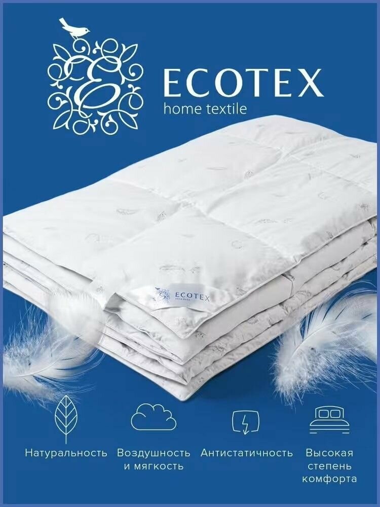 СохранитьОдеяло гусиный пух евро (200x220 см) "Феличе", чехол - тик (100% хлопок), Ecotex интересное: