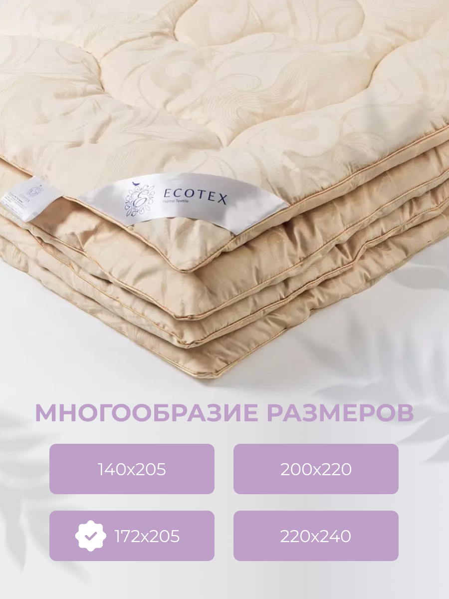 Одеяло ECOTEX Меринос, всесезонное, 172 х 205 см, бежевый
