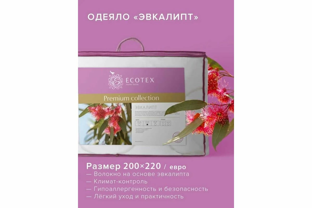 СохранитьОдеяло Ecotex Эвкалипт (200х220 см), эвкалиптовое волокно, всесезонное интересное: