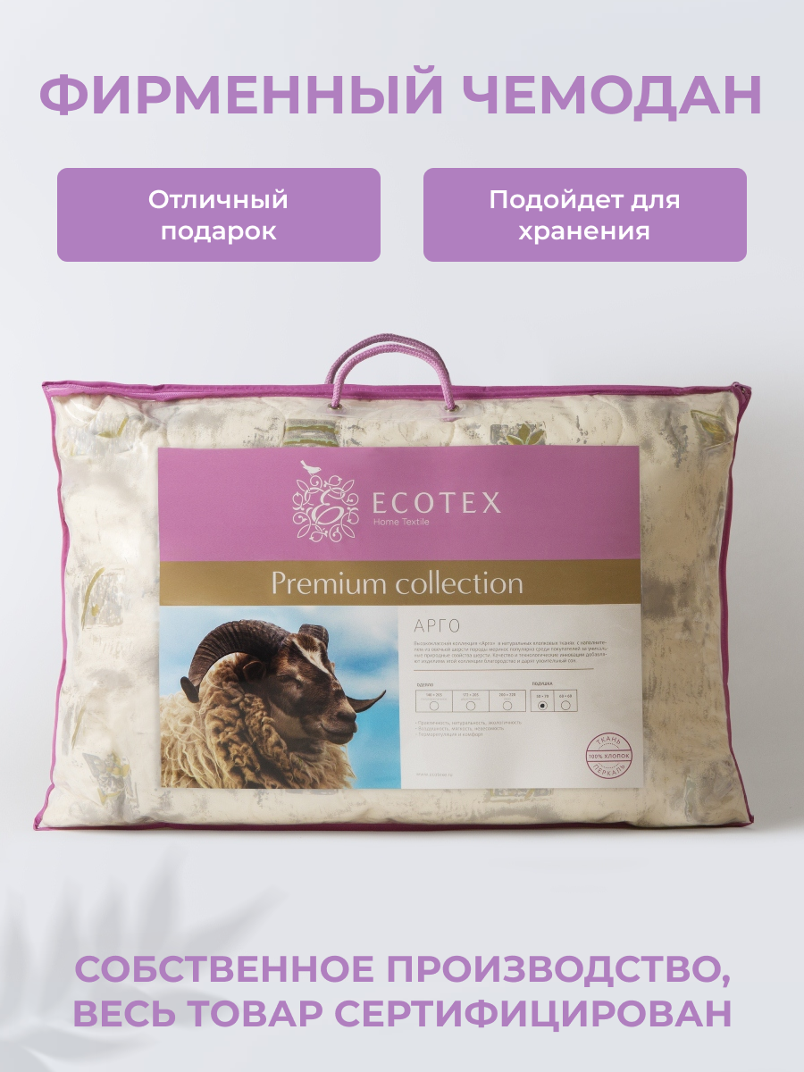 Подушка Ecotex Арго овечья шерсть, стеганый чехол, 100% хлопок ПАР57