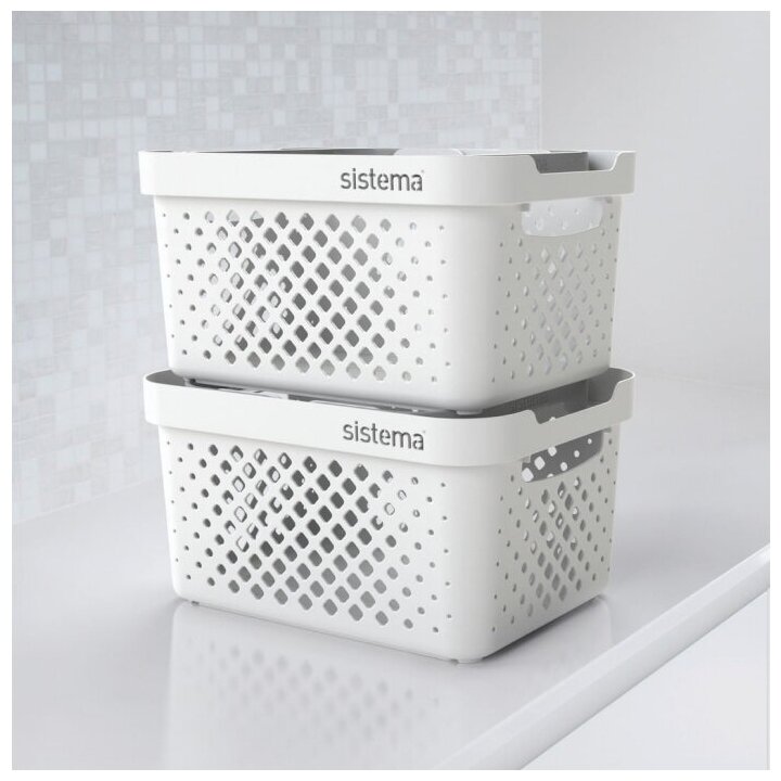 Корзина для белья Sistema универсальная, 26х19.5х14 см, белый