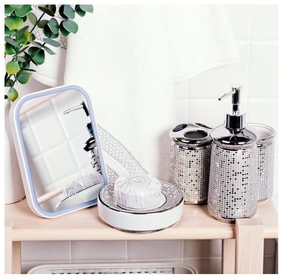 Набор аксессуаров для ванной комнаты 3 предмета Elan Gallery Серебро (мыльница, дозатор, стакан)