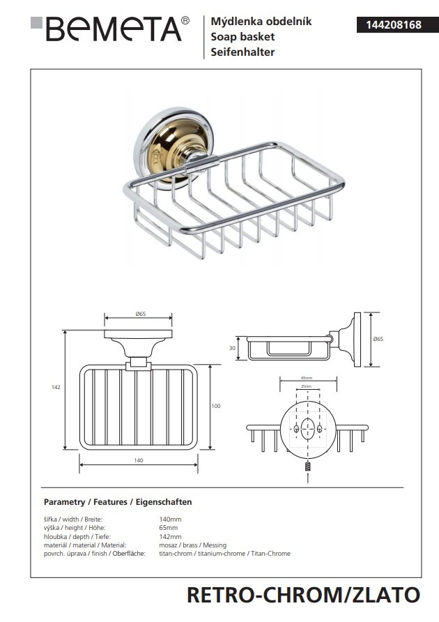 Мыльница Bemeta Retro 144208168 золото/хром