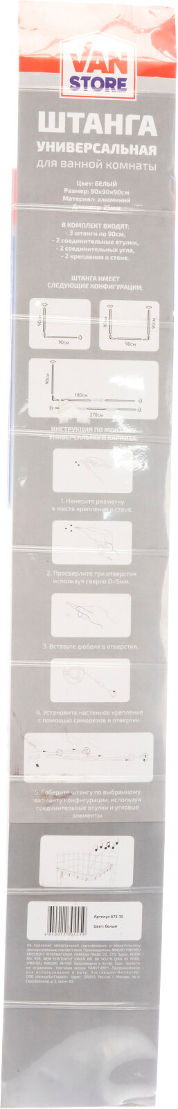 673-10 Карниз универсальный Vanstore, диаметр 25 мм, 90х170, 90x90x90, 90x90, белый интересное: