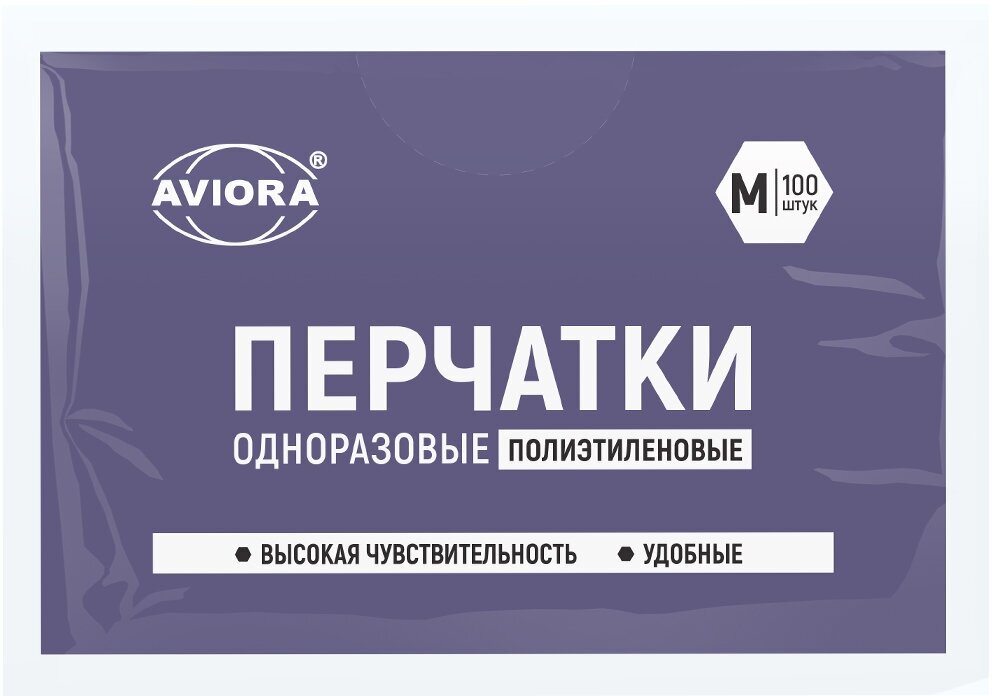 Перчатки полиэтиленовые, одноразовые, 100 шт. в упаковке, р-р. M, AVIORA