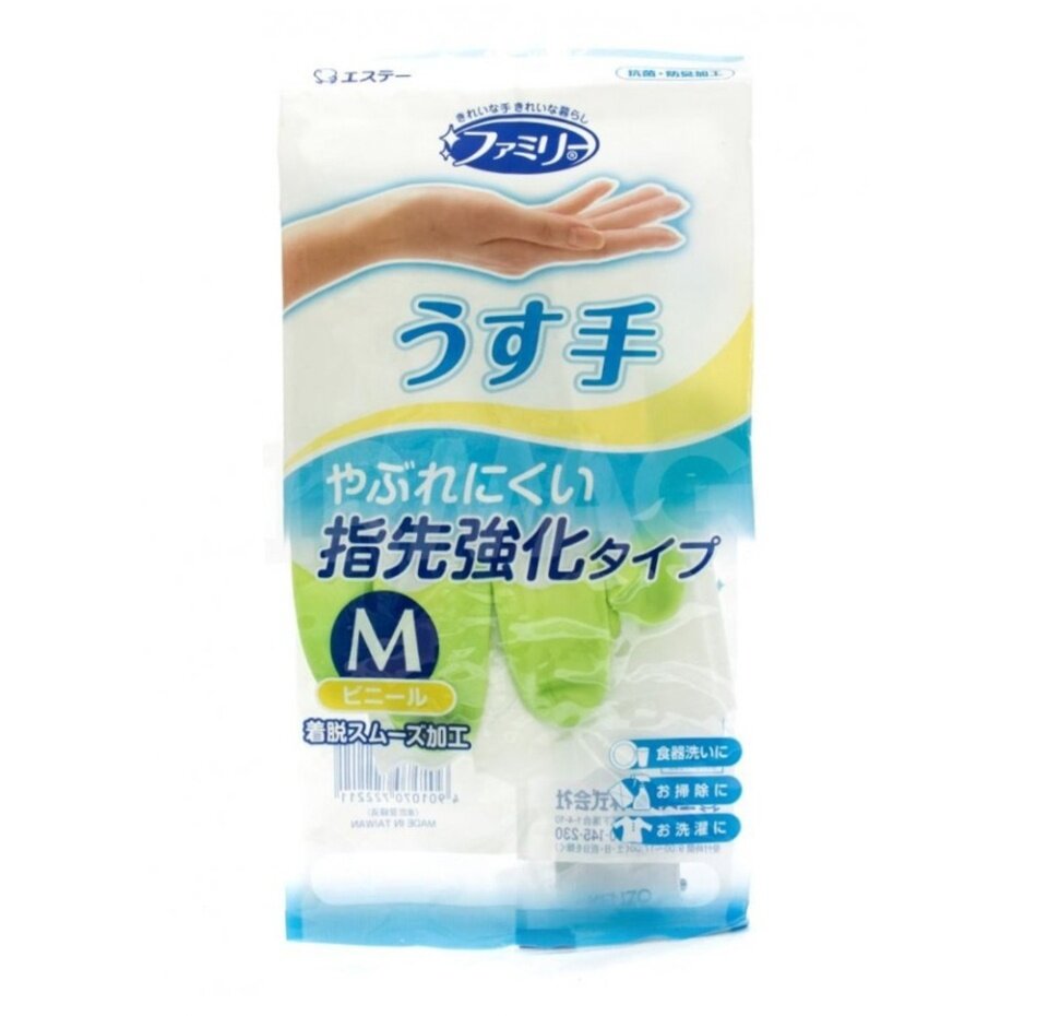 Перчатки хозяйственные ST Family виниловые, с уплотнителем на кончиках пальцев. Размер M. ST-Япония