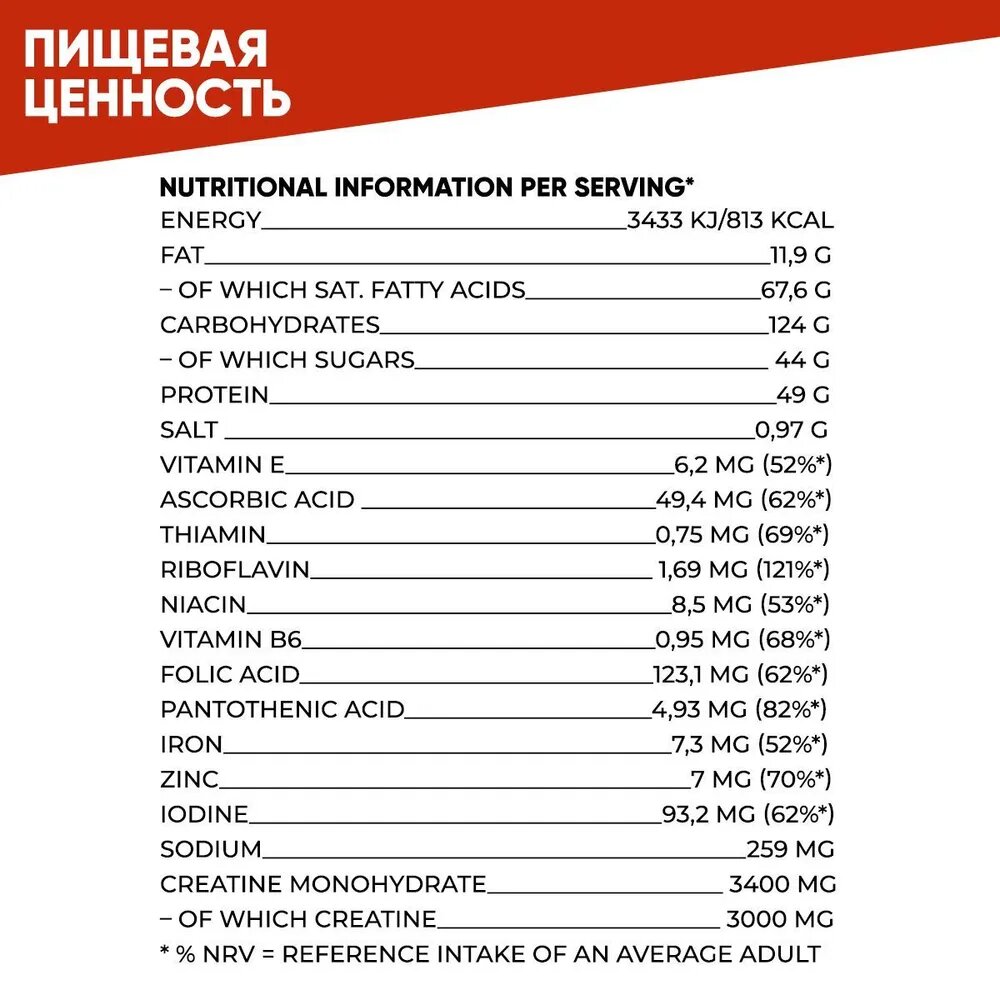 | Плюсы: | Отличный гейнер. Прекрасный состав. Кроме белка: -креатин; -витамины; -микроэлементы и углеводы. Низкая стоимость и высокое качество. |