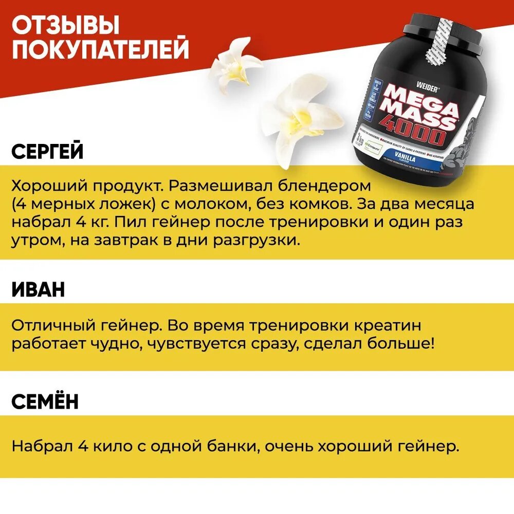 WEIDER Mega Mass 4000 ваниль, 3000 г интересное: