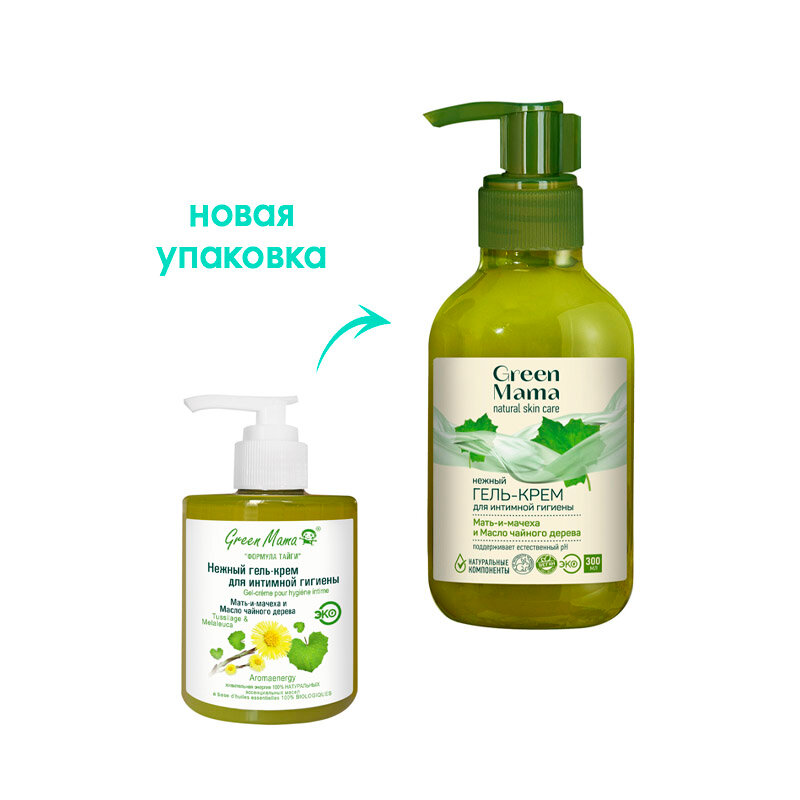 Грин Мама / Green Mama - Гель-крем для интимной гигиены нежный Формула Тайги Мать-и-мачеха 300 мл