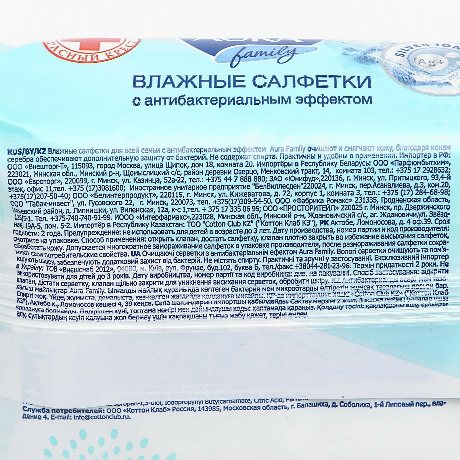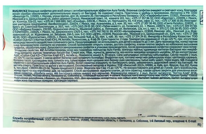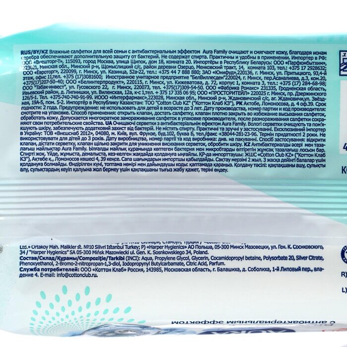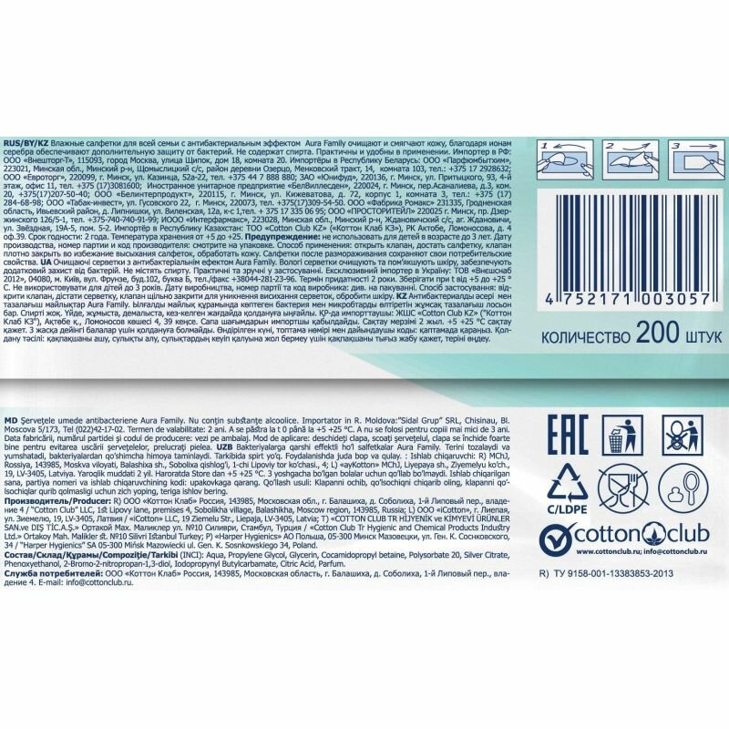 Влажные салфетки Aura Family для всей семьи, 200шт - Cotton Club