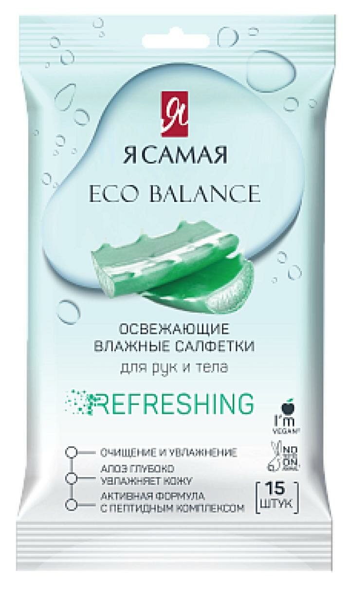 Я Самая Влажные салфетки освежающие Алоэ, 15 шт.