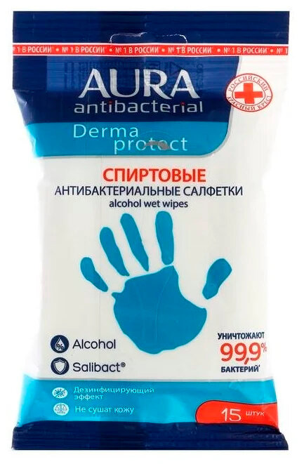 Салфетки влажные «Aura Family» c антибактериальным эффектом, 15 шт