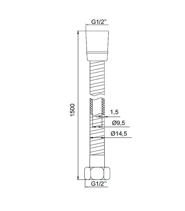 Шланг для душа 1,5 метра ПВХ чёрный матовый 1/2-1/2