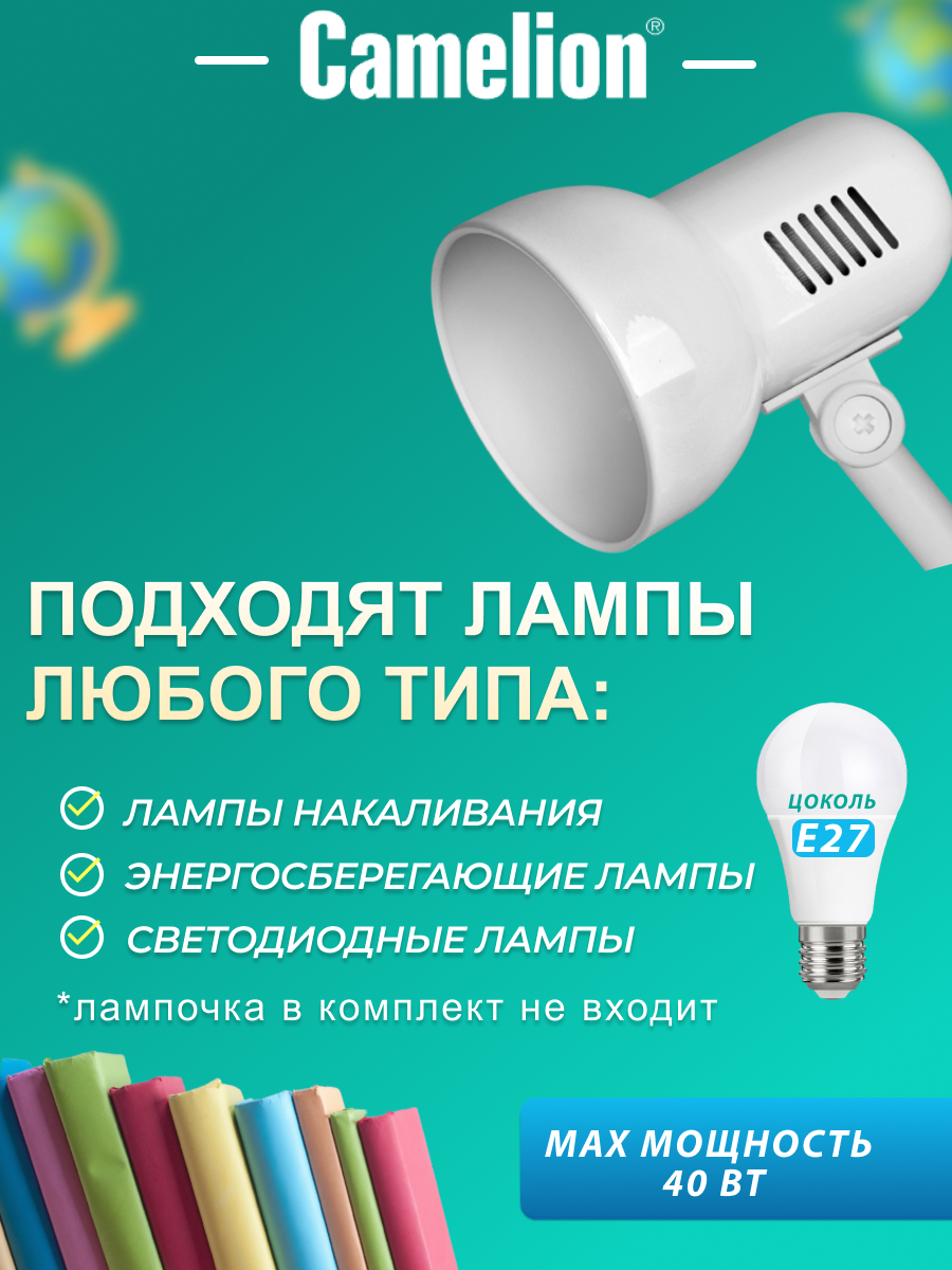 Лампа офисная Camelion Light Solution H-035, E27, 40 Вт, цвет арматуры: белый, цвет плафона/абажура: белый