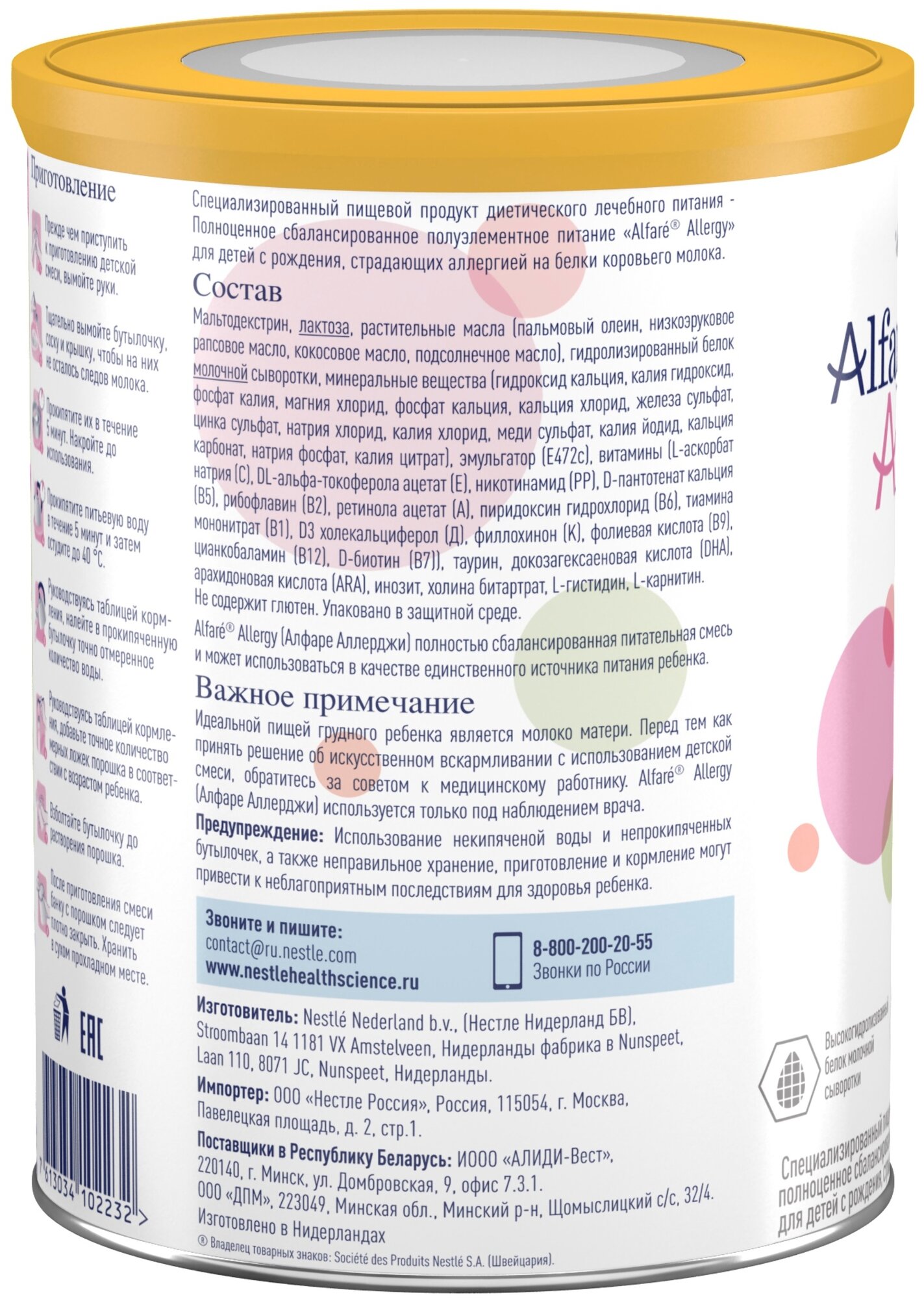 Смесь Alfare (Nestle) Allergy, при аллергии на белок коровьего молока (абкм), с рождения, 400 г