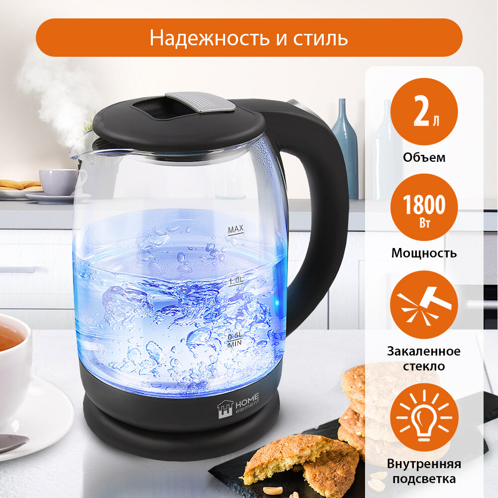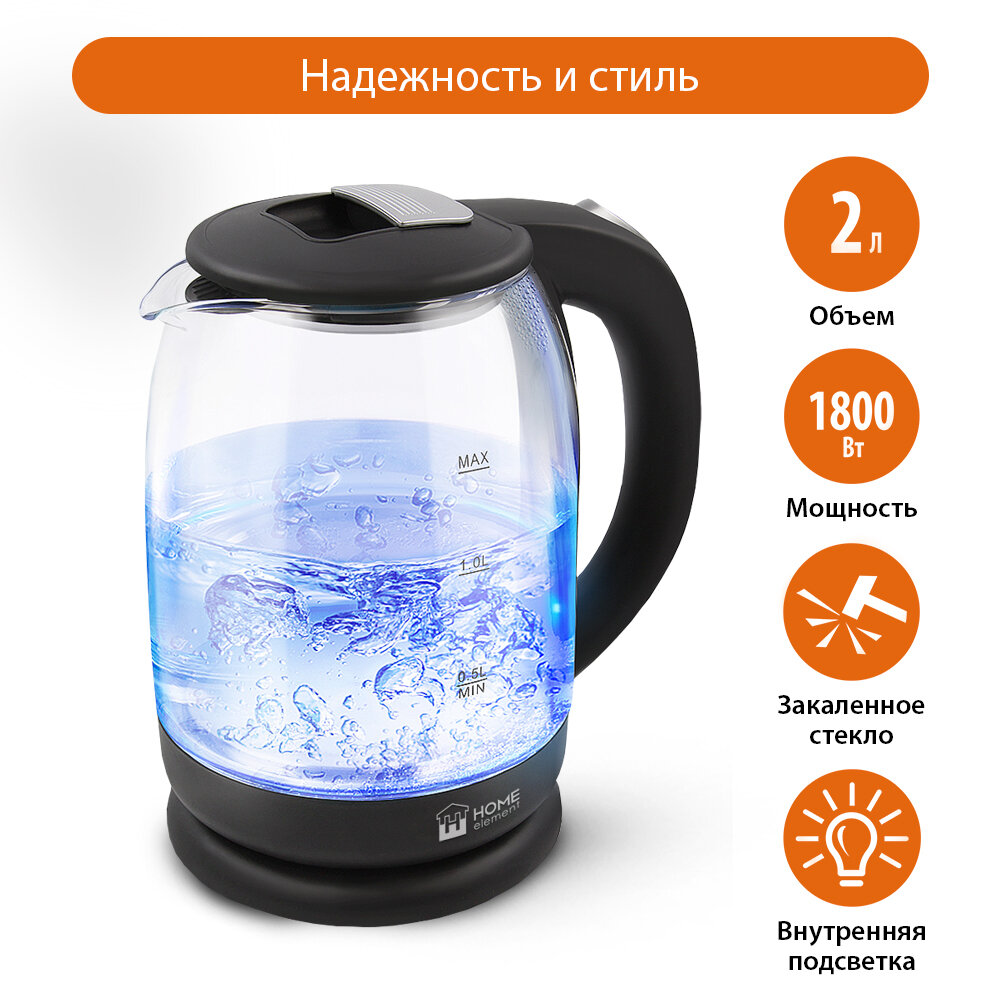 HOME ELEMENT HE-KT191 черный жемчуг чайник стеклянный
