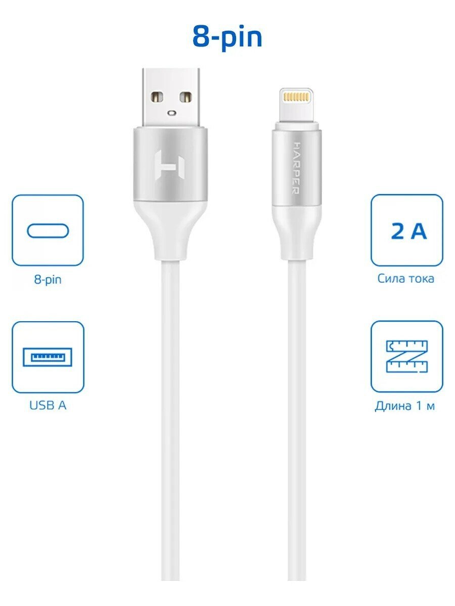 Купить Кабель HARPER SCH-530 белый (USB A - 8-pin, 2A, Быстрая зарядка)