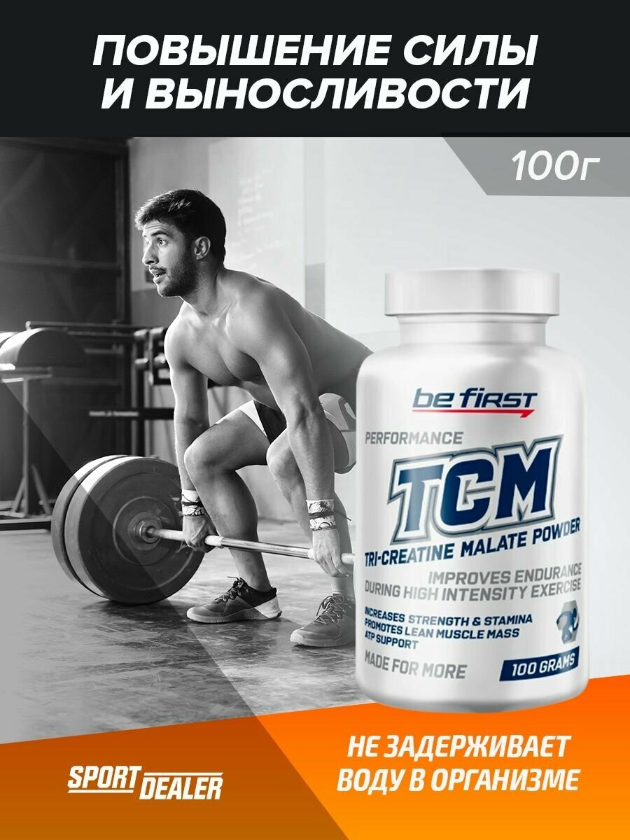 Три креатин малат Be First, TCM Tri-Creatine Malate Powder, 100 г / Рост мышечной массы и силовых показателей / Восстановление мышц