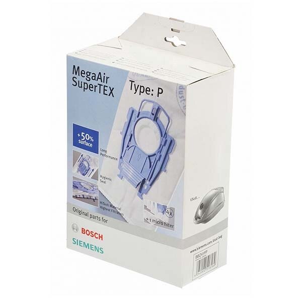 Мешки-пылесборники BBZ41FP для пылесосов Bosch серии BSG8, тип "P" MegaAir SuperTEX с 1 сменным микрофильтром
