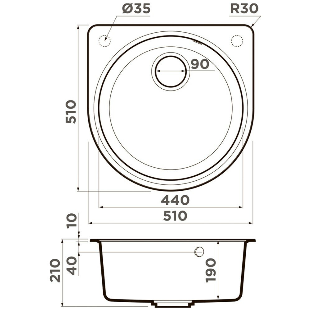 Кухонная мойка OMOIKIRI Akegata 51-BL, искусственный гранит/круглая/черный