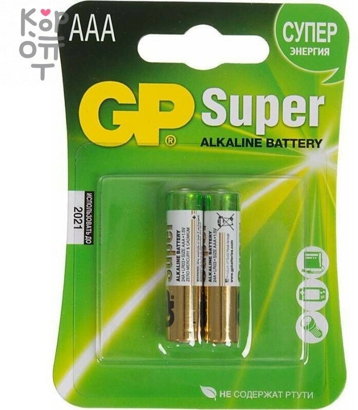 Батарейка GP Super AAA/LR03 (1.5 В) алкалиновая (блистер, 2шт.) (24A-2CR2)