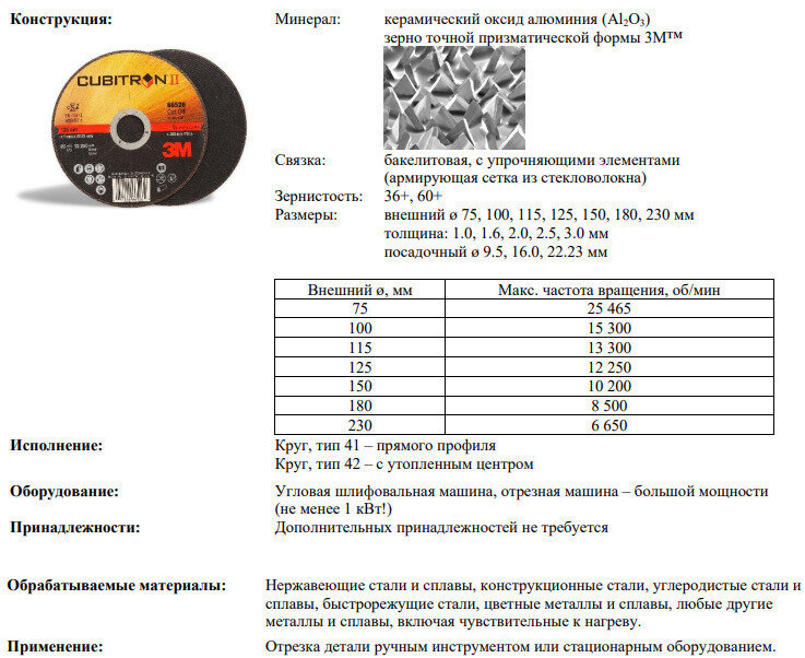 3M Cubitron II Отрезной Круг, T41, 125 мм х 1 мм х 22 мм, 65512 (1 шт) интересное: