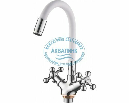 Смеситель для кухни Ledeme L1319-3 длинный двухвентильный белый