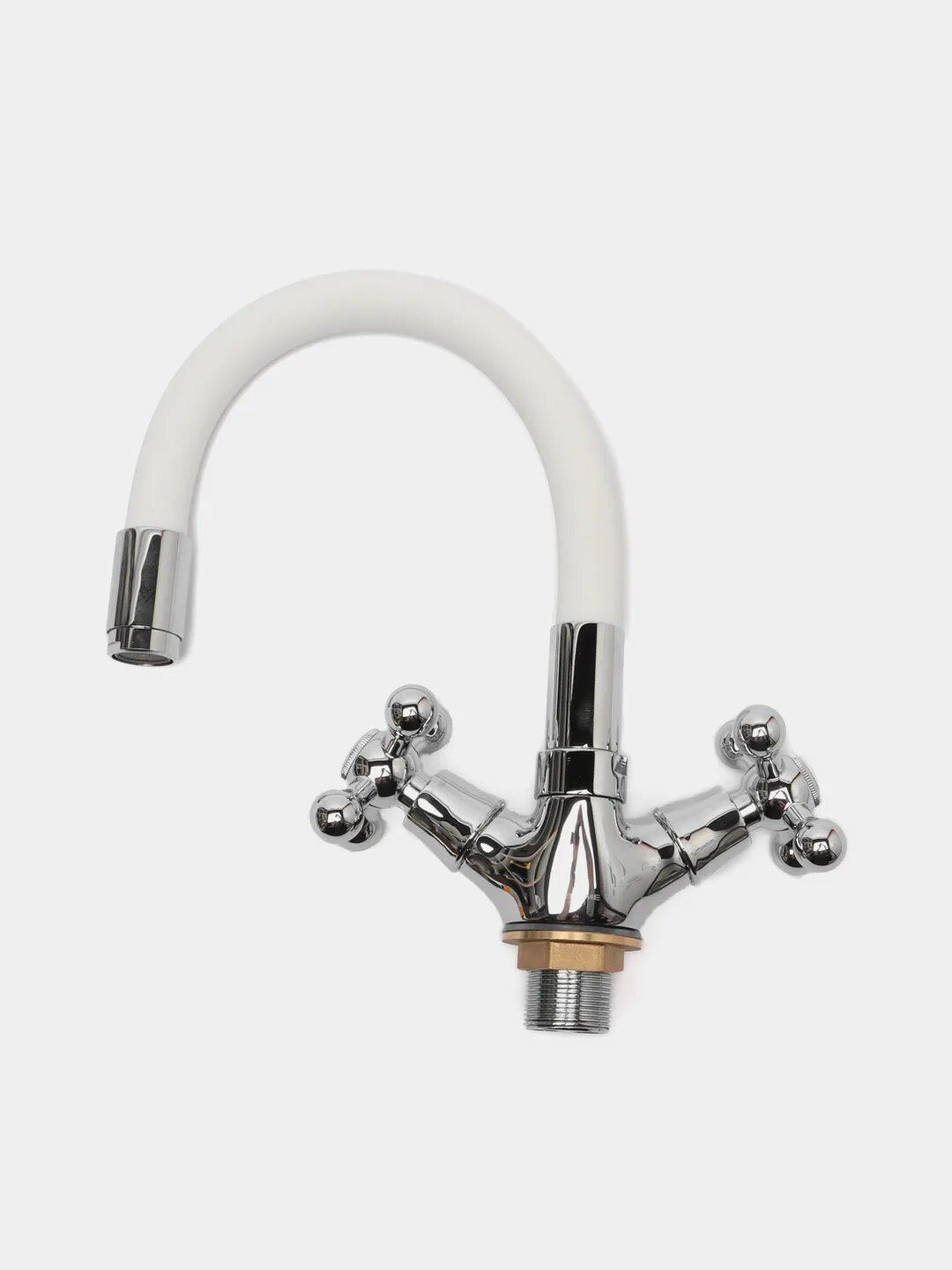 Смеситель кухня LEDEME , гибкий шланг, крест, белый, L1319-3