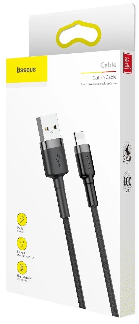 Купить Кабель USB BASEUS Cafule, USB - Lightning, 1.5А, 2 м, серый+черный