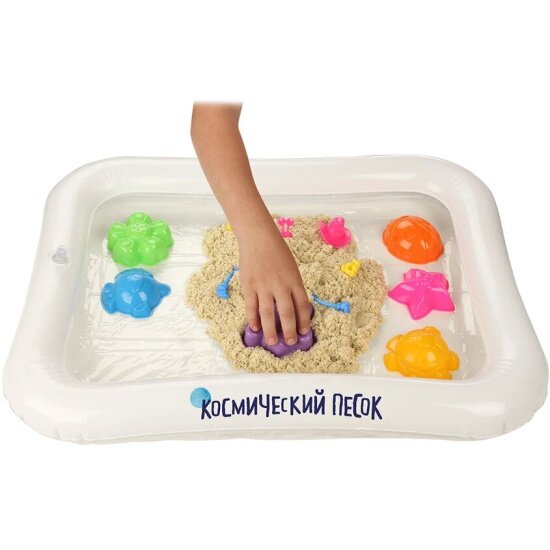 Кинетический песок Космический песок Набор с формочками и надувной песочницей, натуральный, 1 кг, картонная пачка