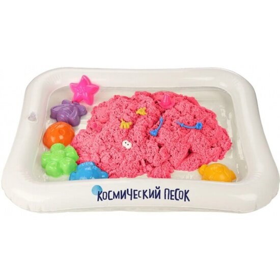 Кинетический песок Космический песок Набор с формочками и надувной песочницей, розовый, 1 кг, картонная пачка
