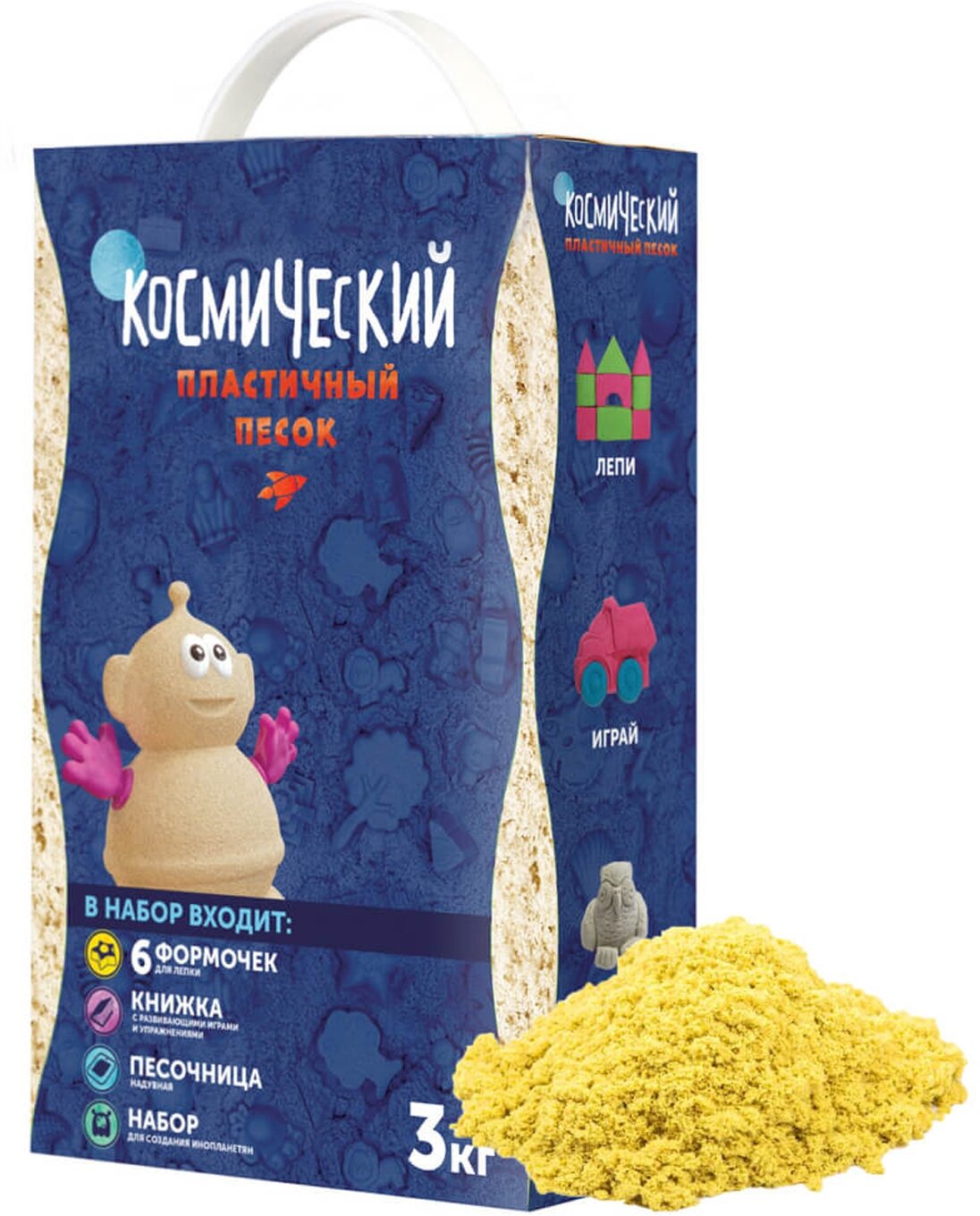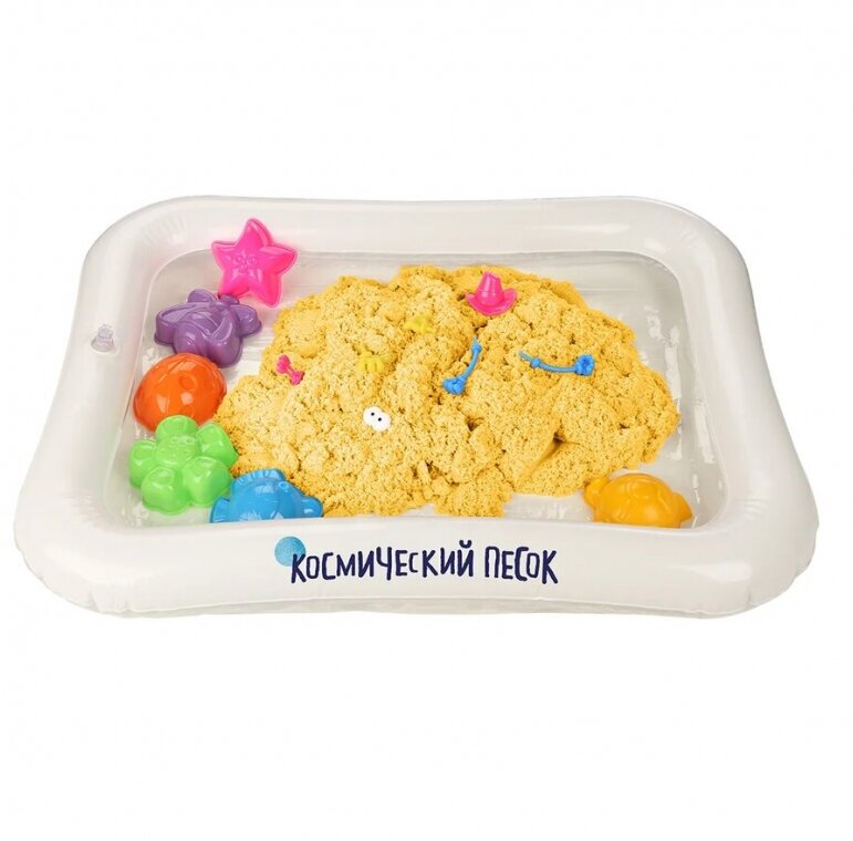 Купить Кинетический песок Космический песок Набор с формочками и надувной песочницей, желтый, 3 кг, картонная пачка