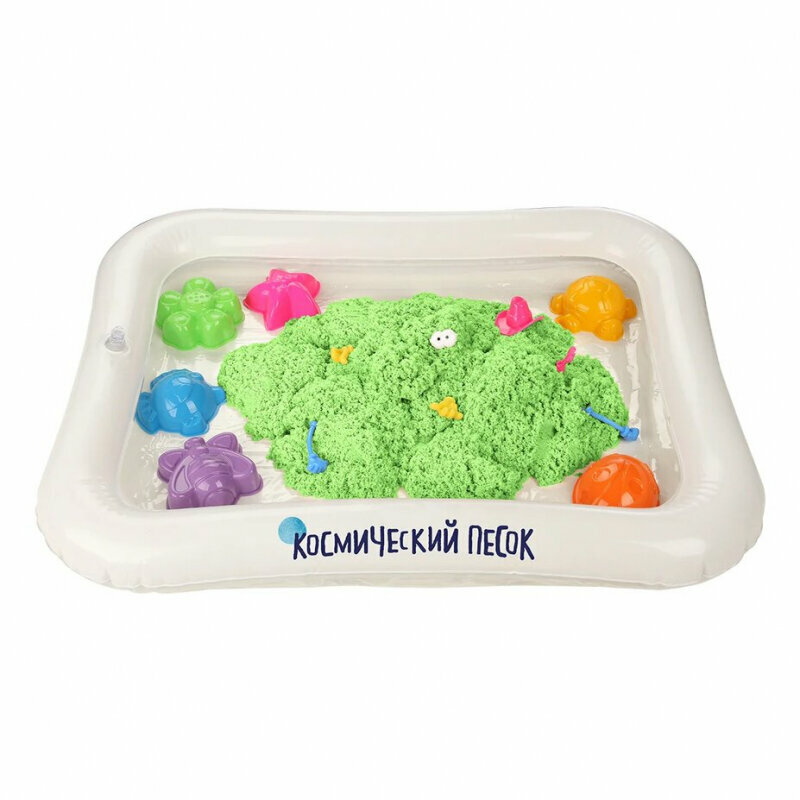 Кинетический песок Космический песок Набор с формочками и надувной песочницей, зеленый, 2 кг, картонная пачка