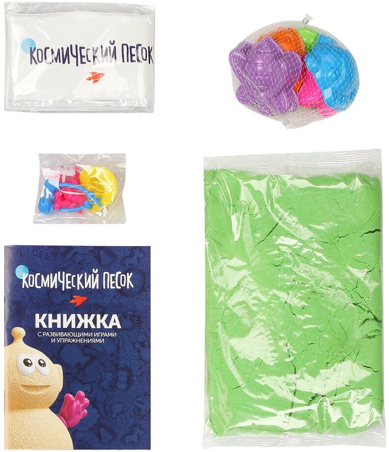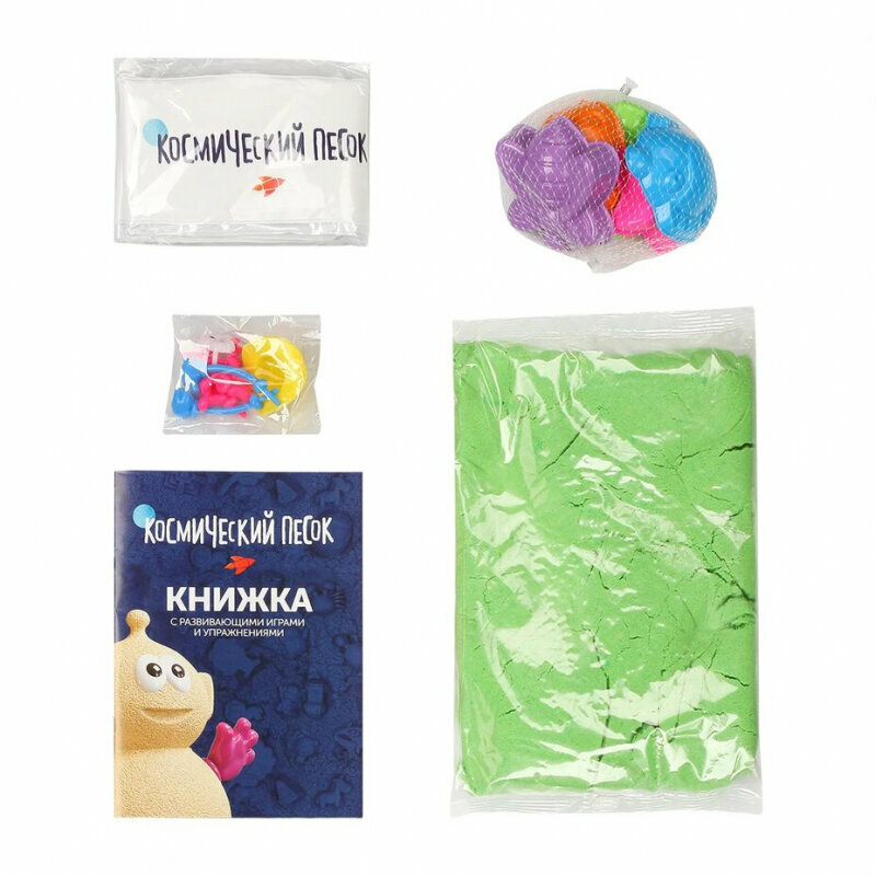 Волшебный мир Космический песок зелёный в коробке, 1 кг + песочница + формочки