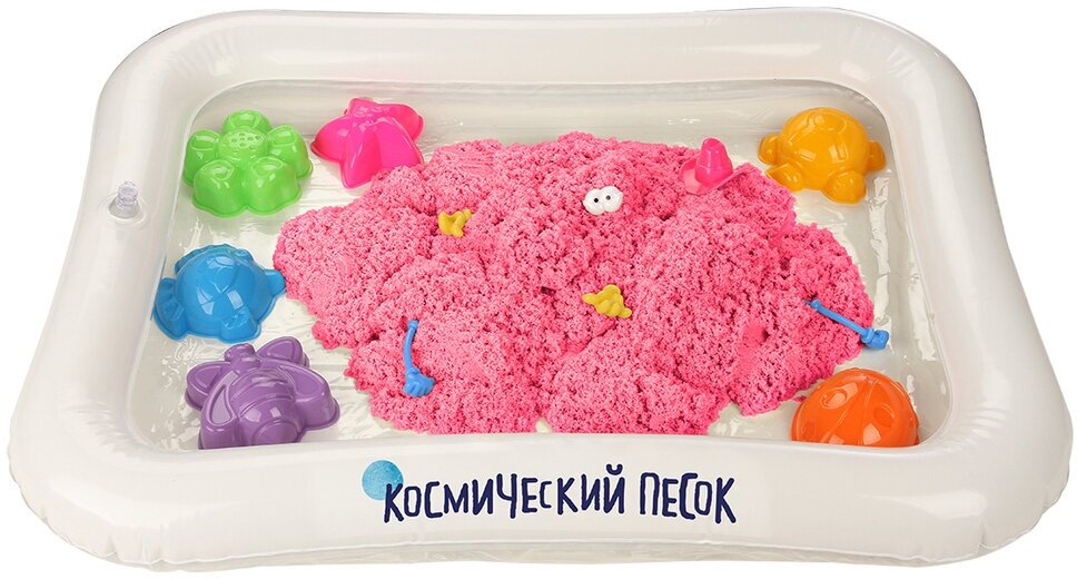Купить Кинетический песок Космический песок Набор с формочками и надувной песочницей, розовый, 2 кг, картонная пачка