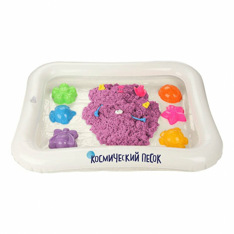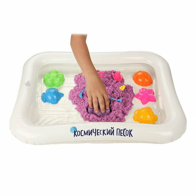 Кинетический песок Космический песок Набор с формочками и надувной песочницей, сиреневый, 1 кг, картонная пачка