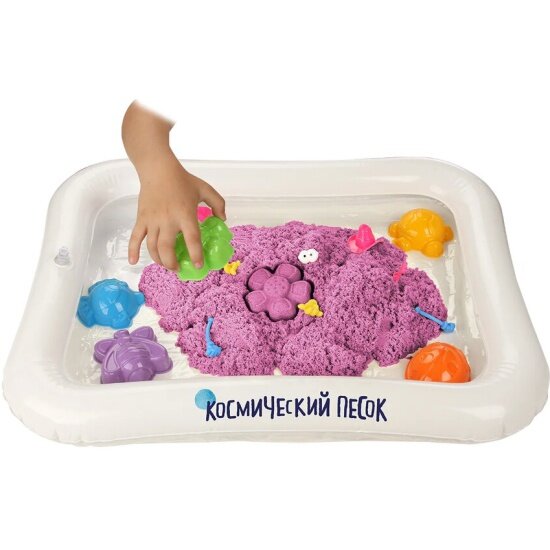 Кинетический песок Космический песок Набор с формочками и надувной песочницей, сиреневый, 1 кг, картонная пачка