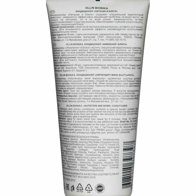 Ollin Bionika Кондиционер (Кондиционер «Питание и блеск»), 200 мл