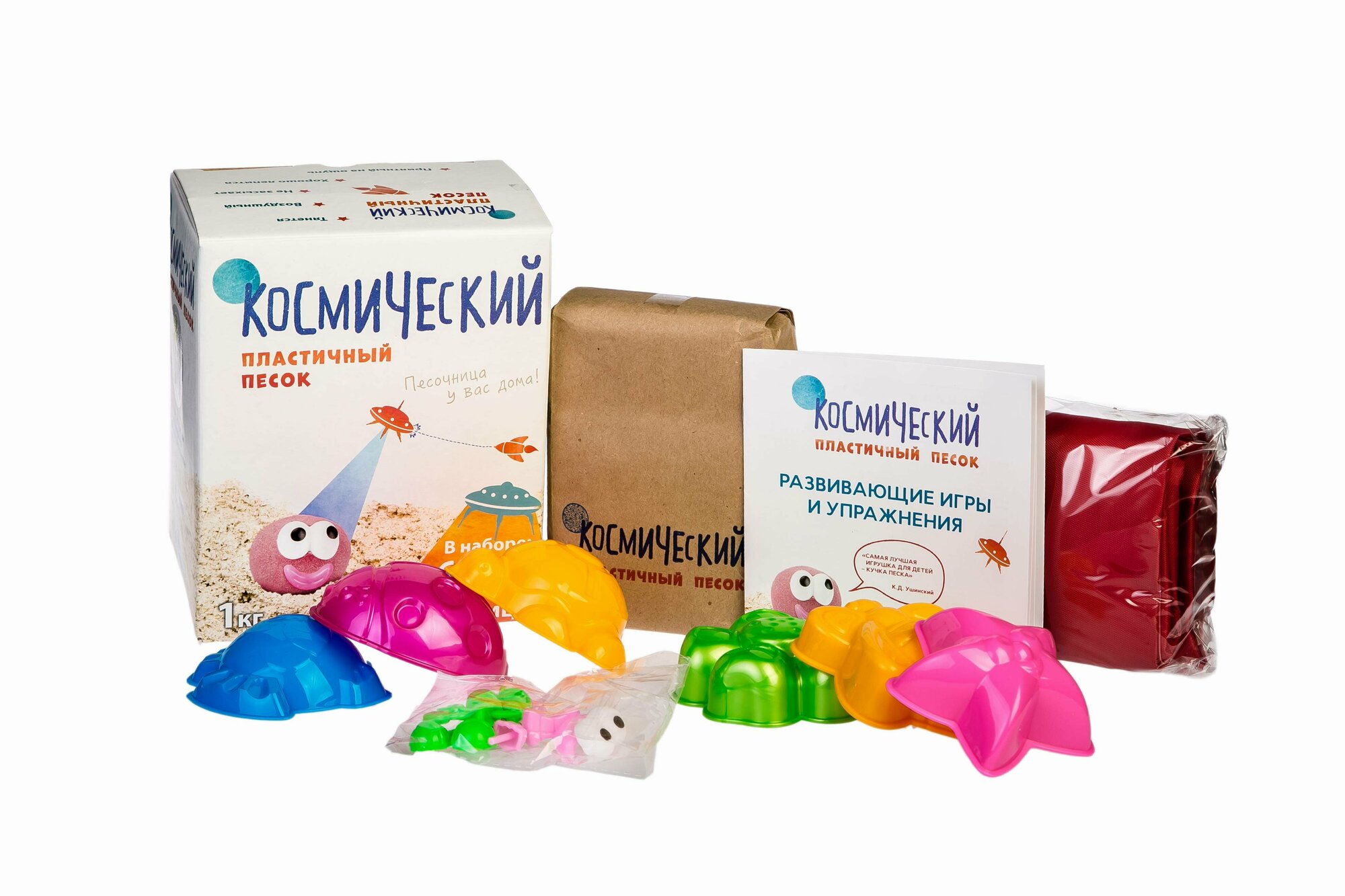 Кинетический песок Космический песок Набор с формочками и надувной песочницей, натуральный, 1 кг, картонная пачка