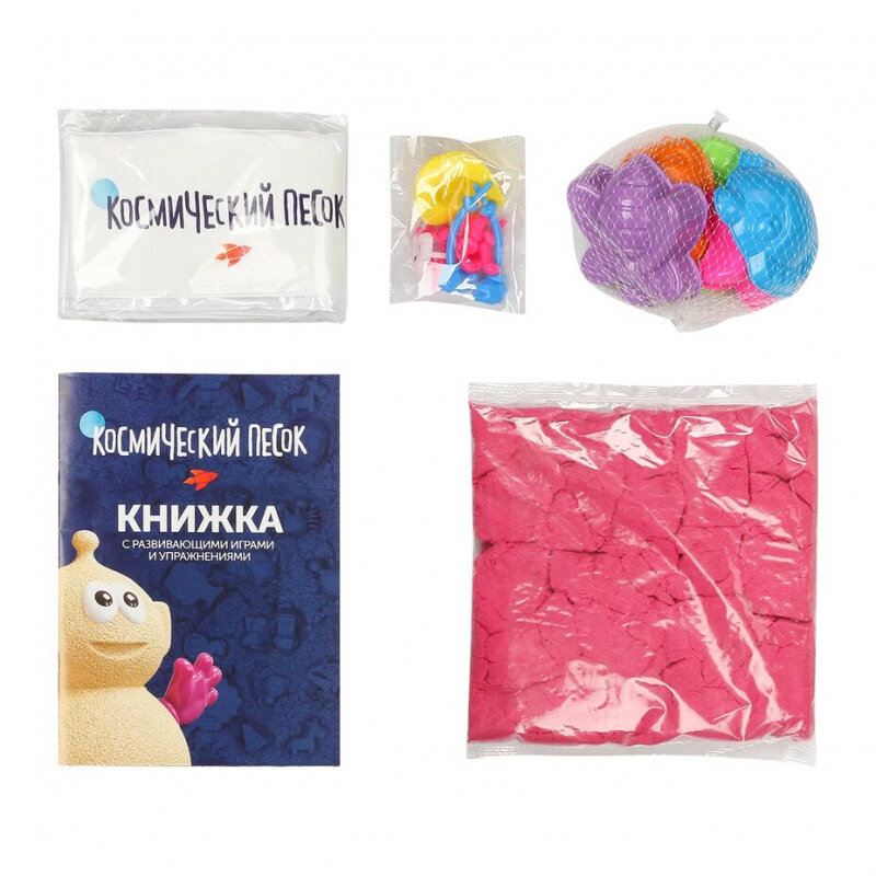 Купить Космический песок розовый в коробке, 1 кг + песочница + формочки