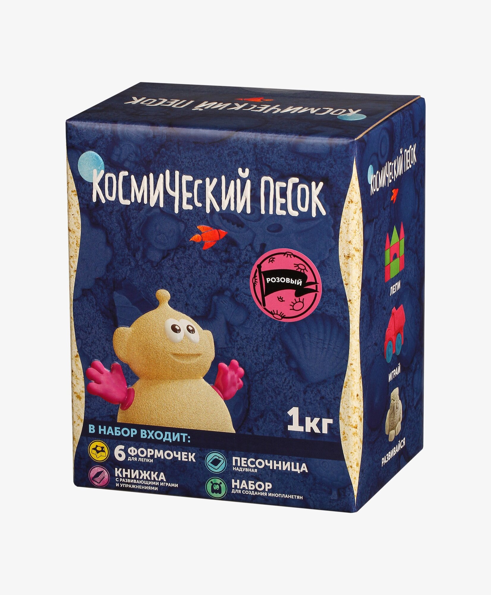 Кинетический песок Космический песок Набор с формочками и надувной песочницей, розовый, 1 кг, картонная пачка
