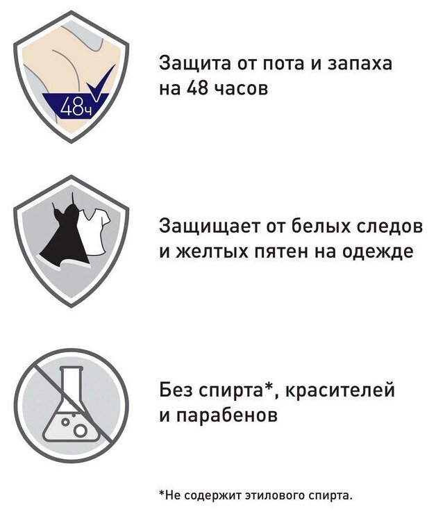 Плюсы : -замочек - зашита от пота Минусы - запах навязчивый - щиплет - шутку производителей про отсутсвие следов на одежде не оценила , любой другой дезодорант на котором не заявлено этой функции не пачкал мне чёрную одежду , после этого антиперсперанта все в ужасных белых разводах - от пота может и защищает , но не на интенсивных тренировках , от запаха не защищает вообще |