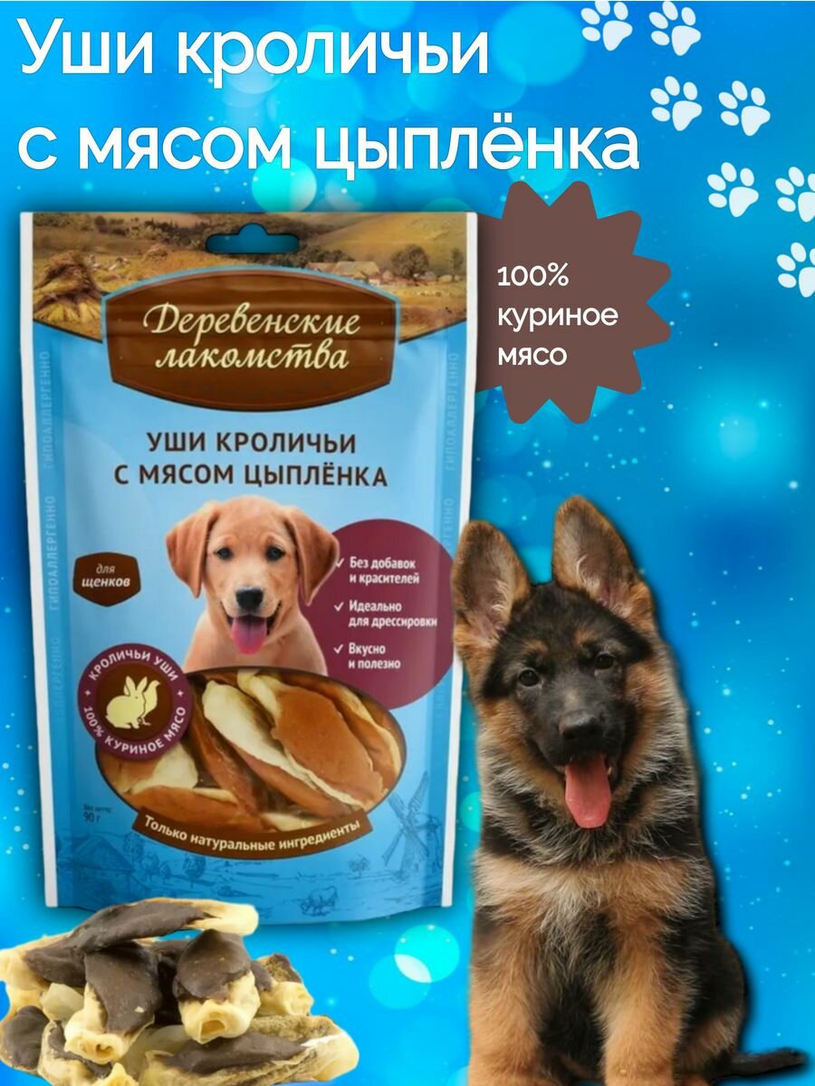 Деревенские лакомства 100 % Мяса уши кроличьи с мясом цыпленка для щенков 90 г