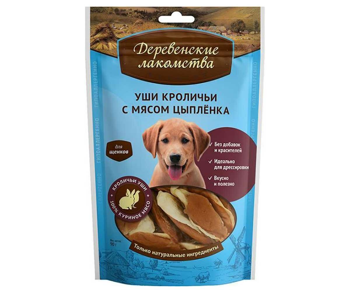 Деревенские лакомства 79711830 для щенков Уши кроличьи с мясом цыпленка 90г
