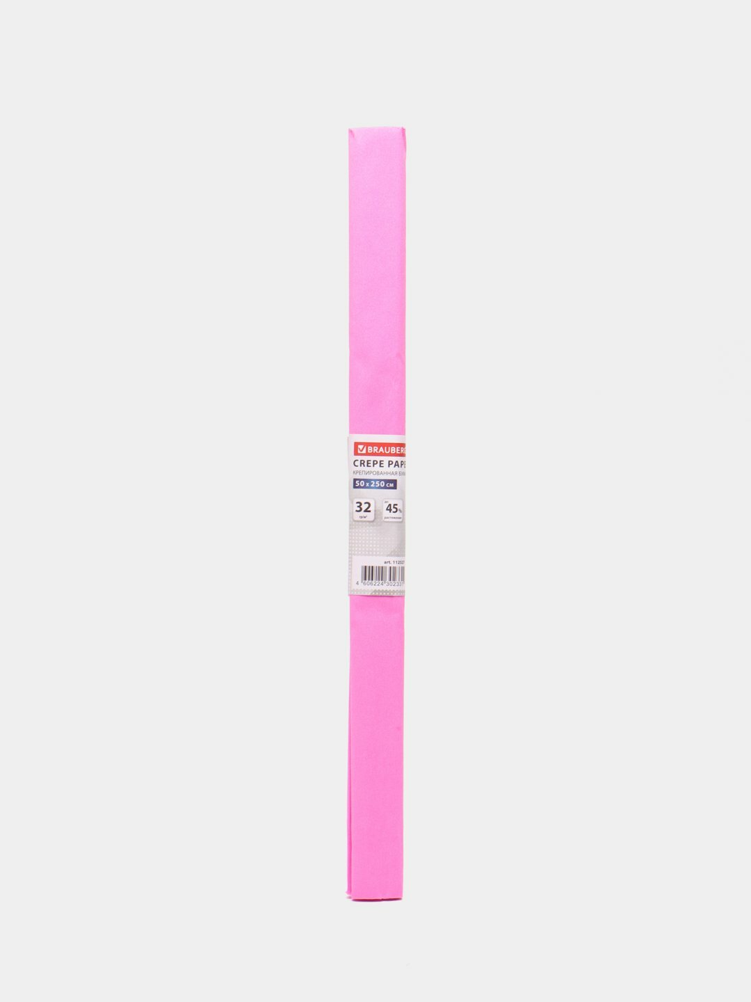 Бумага цветная крепированная Brauberg, 50x250см, плотная, растяжение до 45%, 32 г/кв.м, розовая, в рулоне, 1 лист (126532)
